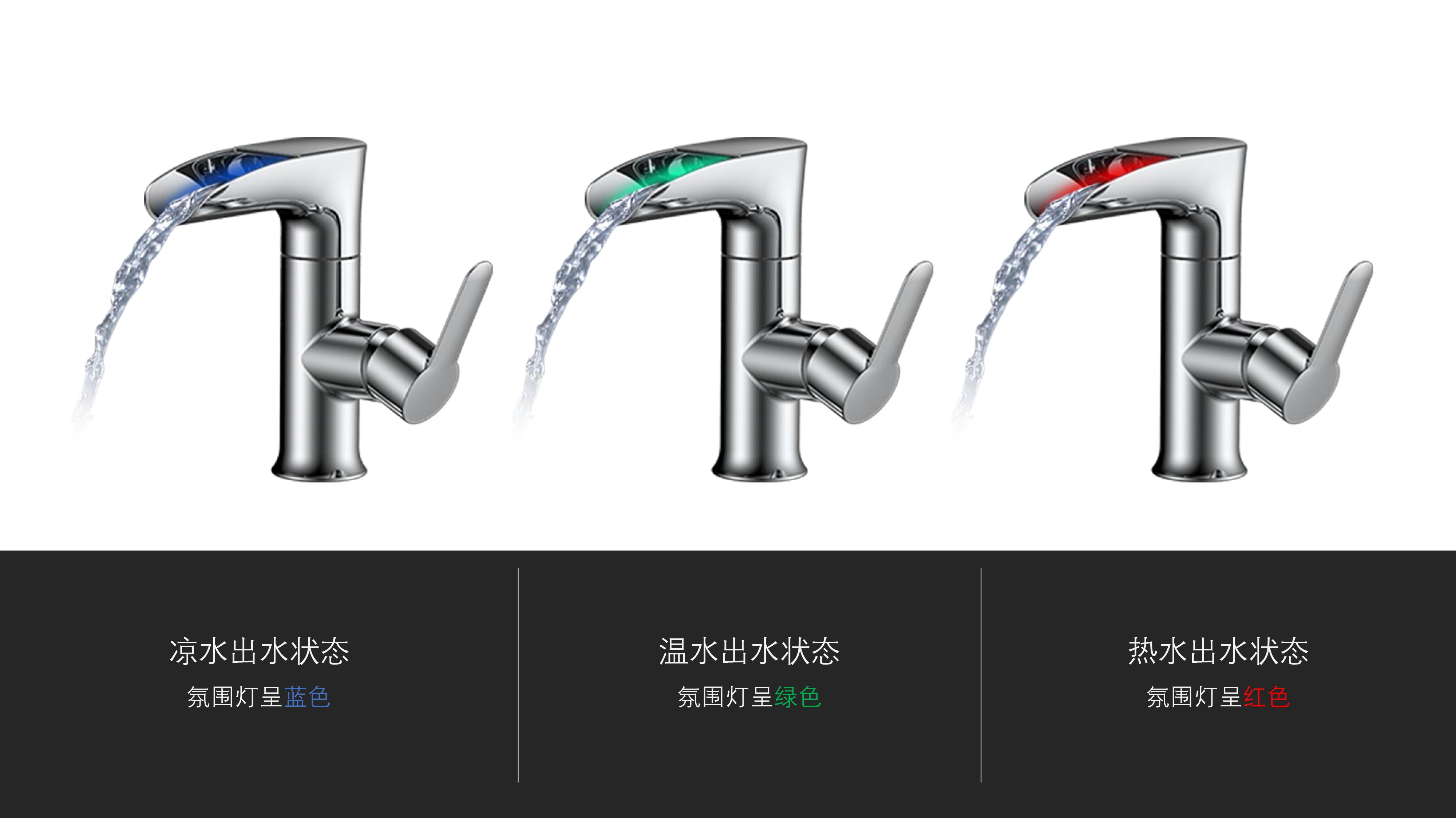 CUPC/ WaterSense/ NSF61/ AB1953(NSF372)認證;簡約時尚設(shè)計;加厚陶瓷閥芯,開合順暢,有效防滴漏;LED三種顏色-涼水呈藍色、溫水呈綠色、熱水呈紅色
